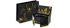 Hộp sơn mài, hộp khắc hoa văn, phối màu kim loại, kèm quai xách giả da hoặc nhung, sẽ gây ấn tượng mạnh cho người nhận.